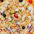 Tomate, Mozzarella, Poulet, Feta, Oignons Rouges,Tomates Cerises Olives Noires, Ail, Origan.